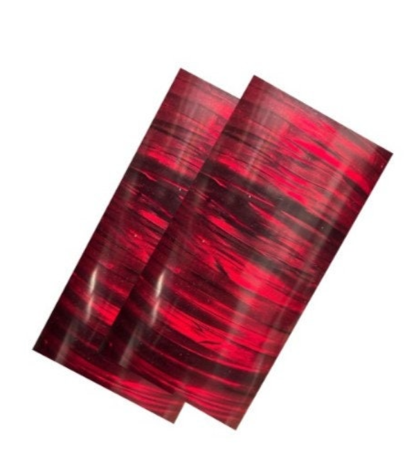 2 Celluloid sheets ( Red with black stripes) Packaging Note: Our celluloid sheets are thin and delicate, so we roll them carefully for shipping to prevent cracking or breakage. This method adds strength during transit but may slightly curve the material. Please consider whether this will impact your project before making a purchase.